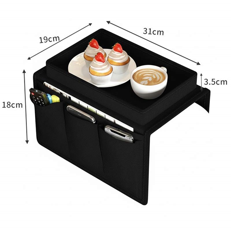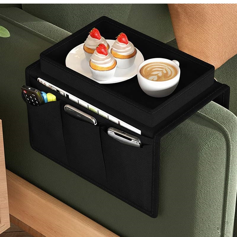El organizador para reposabrazos de sofá ahorra espacio y ofrece una forma inteligente y cómoda de mantener ordenado su espacio vital guardando sus objetos de uso diario justo a su lado. Fabricado con tejido oxford duradero, resiste el polvo y el desgaste, garantizando un uso prolongado sin perder su forma. La bandeja central reforzada de tela oxford y cartón añade estabilidad a la vez que mantiene los objetos ordenados.