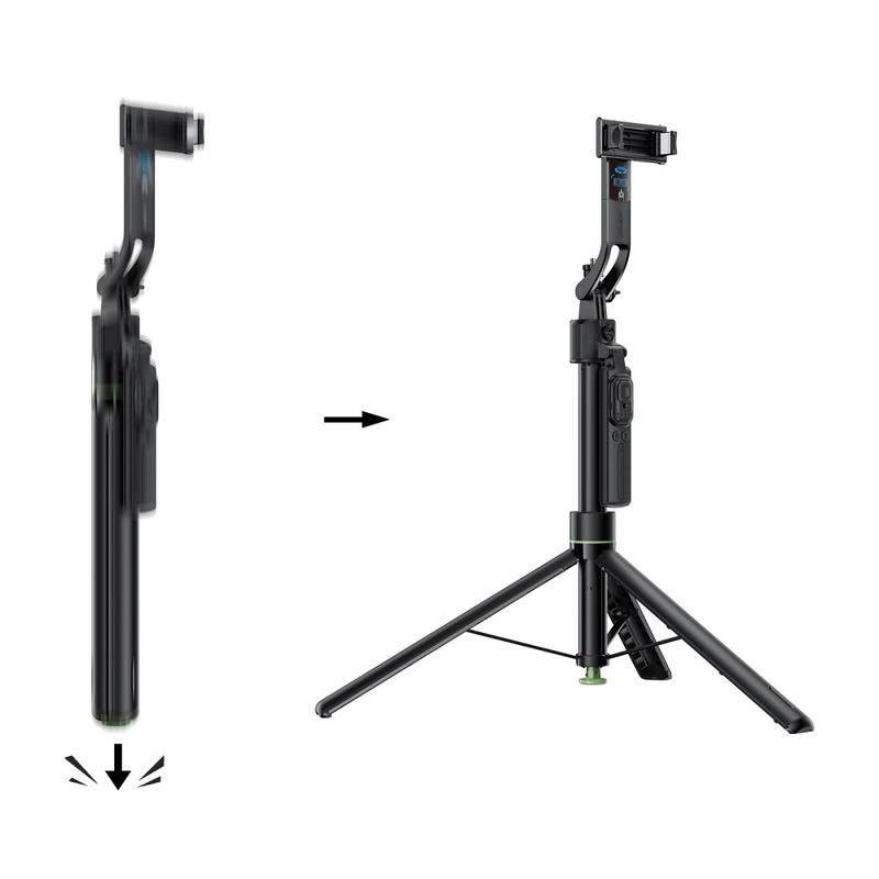 Palo selfie telescópico Acefast E41 con trípode automático y seguimiento facial con IA - Negro