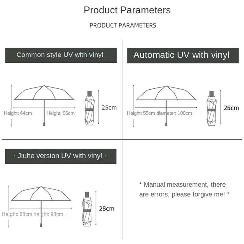• Paraguas plegable compacto anti-UV - Paraguas portátil de viaje para sol y lluvia con 8 varillas, diseño tríptico y bolsa de almacenamiento