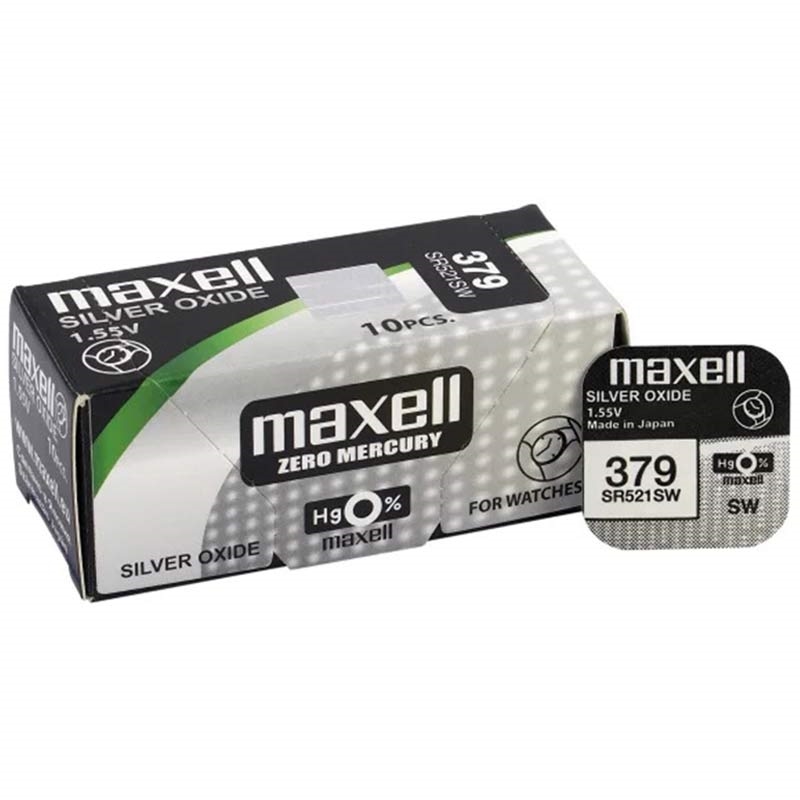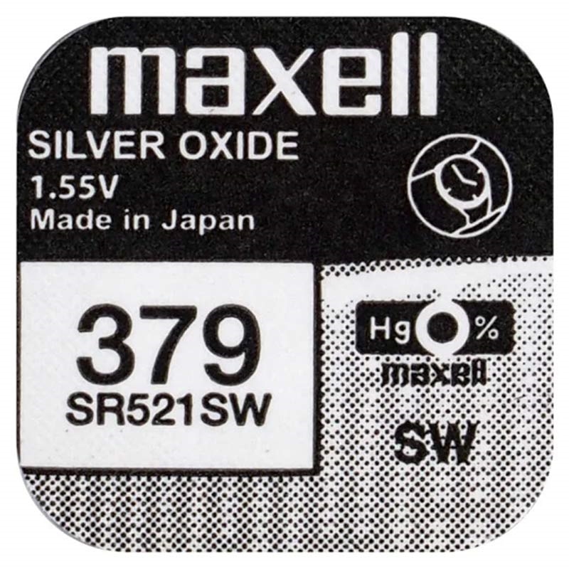 Pila de óxido de plata para relojes Maxell 379 - Pila de botón de 1,55 V SR521SW/AG0