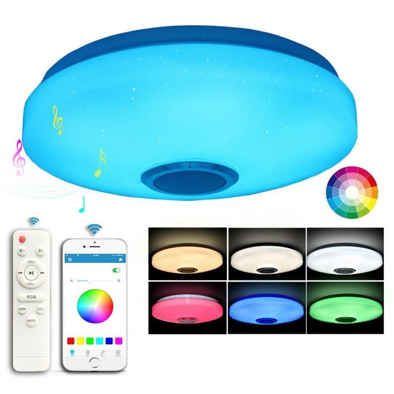 Plafón LED inteligente redondo con altavoz Bluetooth y mando a distancia - 60W - 38cm