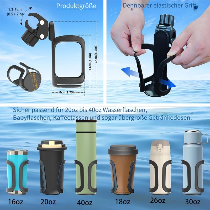 Portabidón giratorio 360 grados con botón de liberación rápida - Soporte de abrazadera universal para botellas de hasta 8 cm, se adapta a tubos de 1,5-4,2 cm