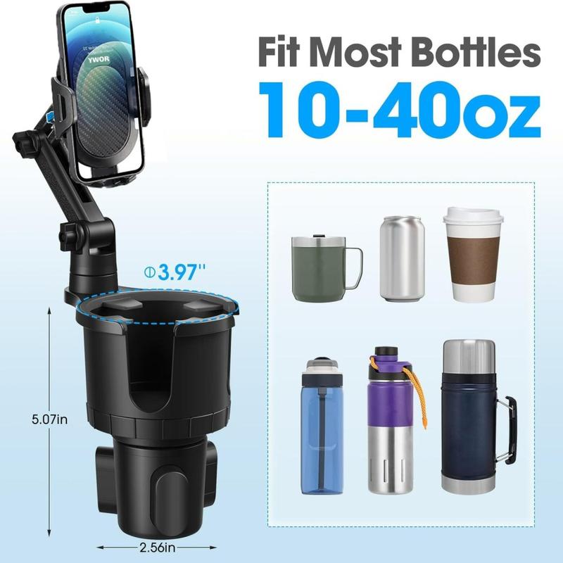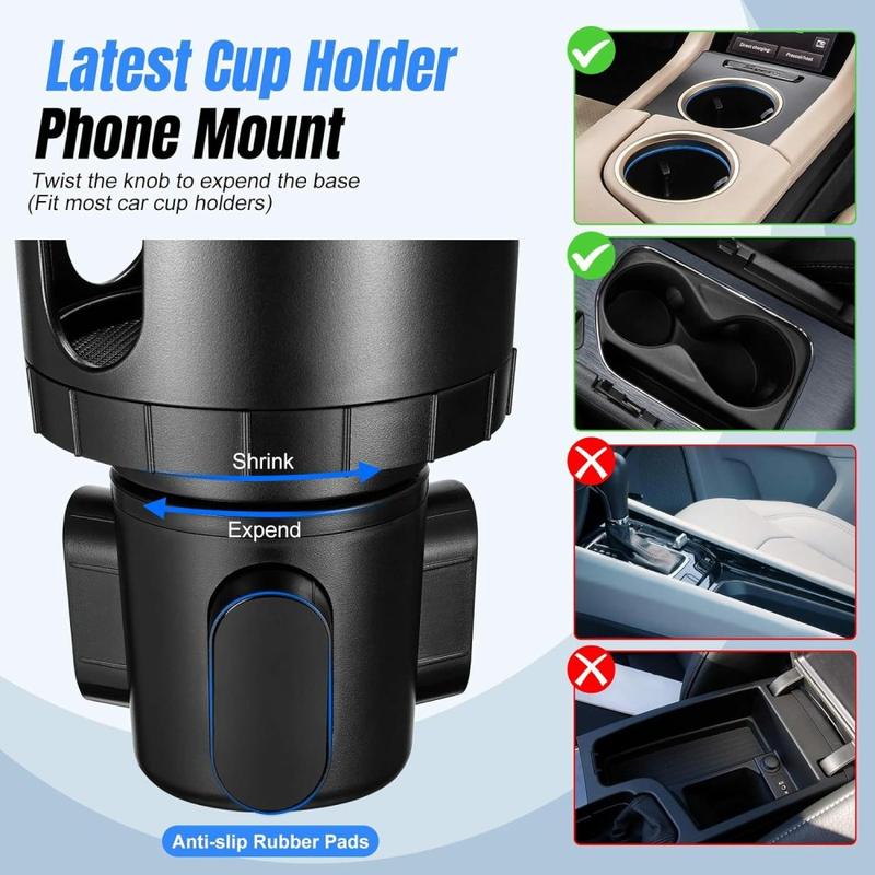 • Soporte 2 en 1 para el coche con fijación para el portavasos: soporte giratorio y ajustable en 360º con sistema de liberación rápida, apto para teléfonos de 4 a 7 pulgadas