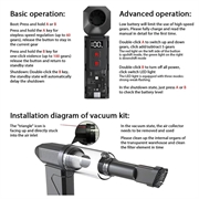 - El control de velocidad variable ayuda a evitar que el polvo se introduzca más profundamente en los dispositivos al limpiar áreas delicadas.