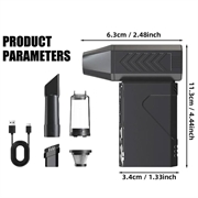 El soplador y aspirador Jet Turbo 2 en 1 es una herramienta de limpieza compacta y de alta velocidad diseñada para eliminar rápidamente el polvo y realizar la limpieza diaria. Cambia entre el potente soplado de aire y la succión de la aspiradora para realizar diferentes tareas en tu hogar, coche o lugar de trabajo. Con 100 niveles de velocidad y una gran batería de 8000 mAh, puedes ajustar con precisión el flujo de aire o la succión y seguir trabajando durante largas sesiones cuando sea necesario.
