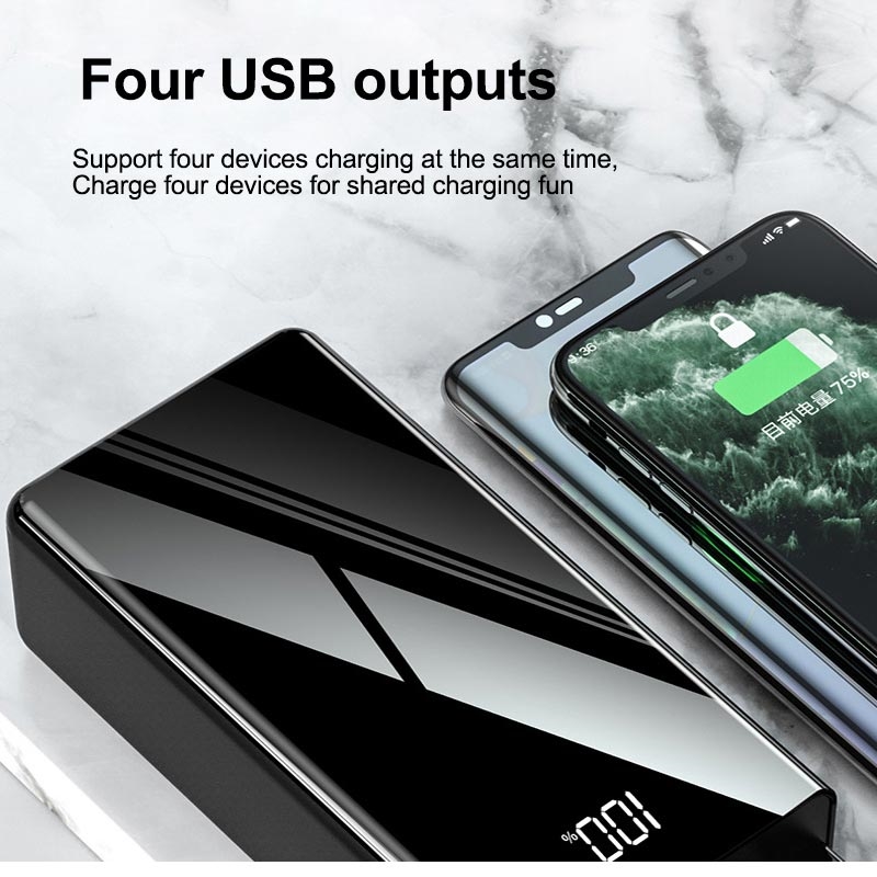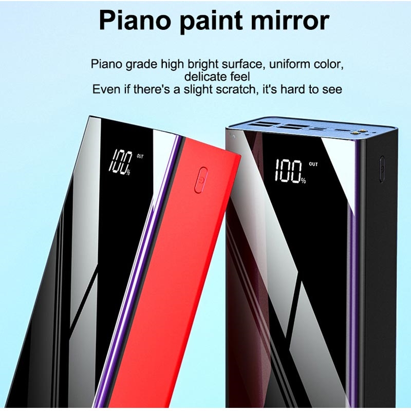Esta powerbank con enorme capacidad es una manera perfecta de recargar rápidamente su teléfono, tableta y otros dispositivos mientras está en movimiento. Está equipada con tres puertos de salida USB, una salida / entrada PD tipo C, iluminación y entradas MicroUSB. Con cuatro salidas y una capacidad de batería de 50000 mAh, puede recargar hasta cuatro dispositivos simultáneamente, varias veces. Además, esta betría externa compacta tiene un indicador de estado LED en una superficie similar a un espejo, por lo que siempre sabrá cuánta energía queda.