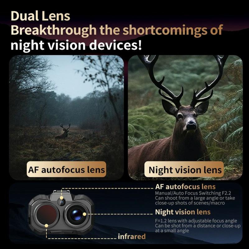 Los prismáticos de visión nocturna NV109 son una herramienta de calidad profesional diseñada para entusiastas de las actividades al aire libre, cazadores, observadores de la vida salvaje y fotógrafos nocturnos. Con un sistema de doble lente, una potente visión nocturna por infrarrojos y una pantalla IPS de 2,0 pulgadas, estos prismáticos ofrecen una claridad excepcional tanto de día como de noche. Con vídeo de 2,7K, fotos de 64 MP y zoom de hasta 28×, son perfectos para captar todos los detalles en la naturaleza.