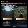 - Tecnología de doble lente: Combina un objetivo de visión nocturna de enfoque largo con un objetivo gran angular AF para disparar tanto a corta como a larga distancia.