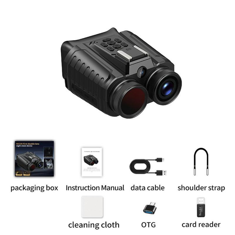 Prismáticos de visión nocturna NV109 con doble lente, grabación de vídeo de 2,7K, fotos de 64 MP y tarjeta de 32 GB - Cámara de caza al aire libre con pantalla IPS de 2,0 pulgadas