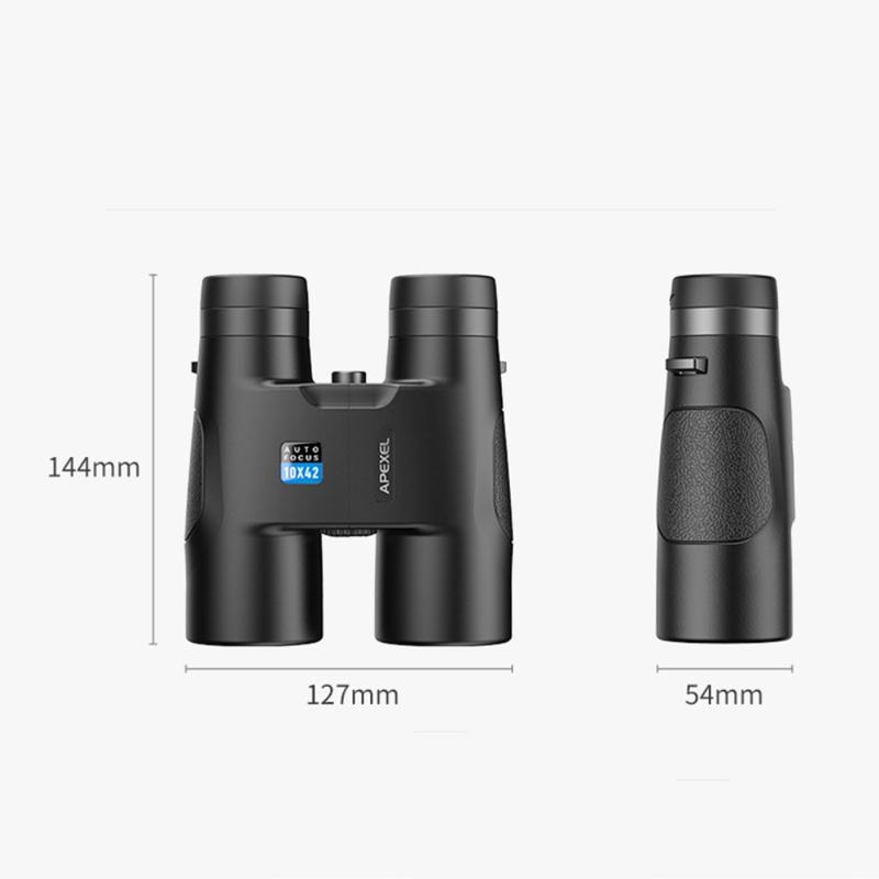 Los prismáticos Apexel 10x42 HD ofrecen una experiencia visual brillante, amplia y envolvente para los entusiastas de las actividades al aire libre. Con un aumento de 10× y una gran lente objetiva de 42 mm, ofrecen una clara visibilidad de largo alcance y un amplio campo de visión, ideal para la observación de aves, senderismo, eventos deportivos, conciertos, caza y viajes.