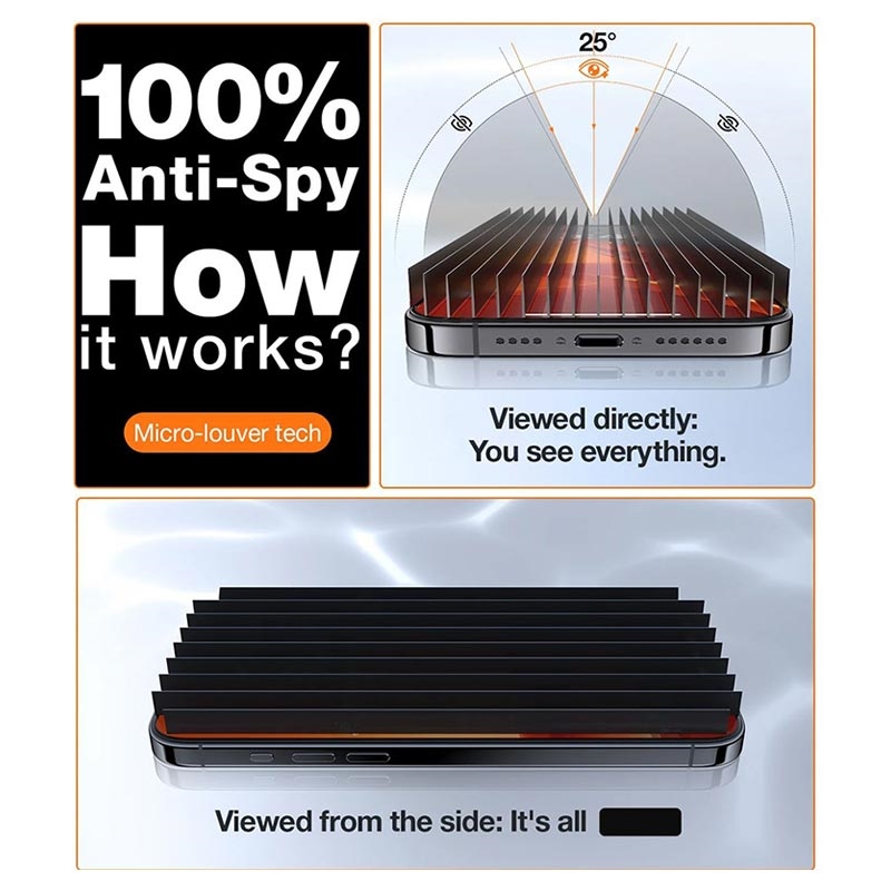 - Tecnología Anti-Spy: Bloquea las vistas laterales, asegurando que tu pantalla solo sea visible para ti, protegiendo la información confidencial en espacios públicos.