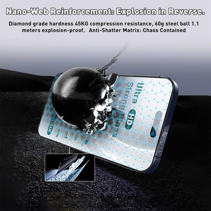 • Protector de pantalla de vidrio templado HD con eliminación automática de polvo y herramienta de presión de bordes para iPhone 15 Pro Max