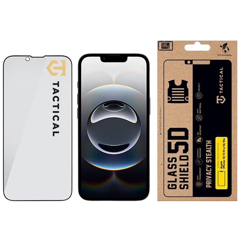 • Protector de pantalla táctil de cristal templado Tactical Glass Shield Privacy Stealth 5D para iPhone 13/13 Pro/14/16e/17e - 9H, 0,33 mm