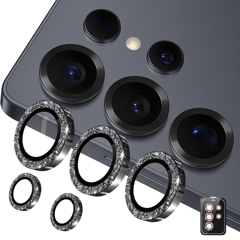 This camera protector is made of premium tempered glass with 9H hardness, placed under the durable aluminum alloy ring decorated with shiny rhinestones. It is precisely crafted to perfectly fit the camera lenses on your Samsung Galaxy S26 Ultra, with high transparency so that it won't affect the quality of captured images and videos.