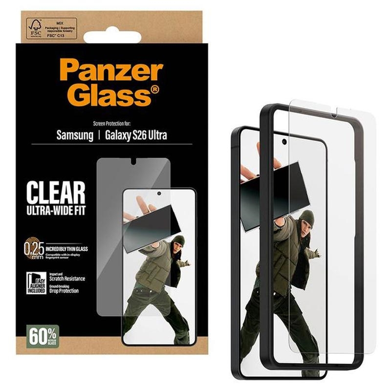 - Protector de pantalla de vidrio templado Ultra-Wide Fit para Samsung Galaxy S26 Ultra de PanzerGlass