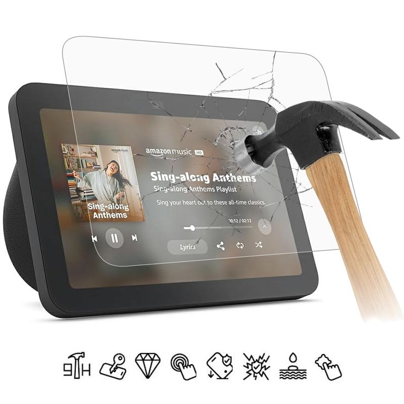 - Borde arqueado de 0,3mm: Proporciona una sensación perfecta que se adapta suavemente a los contornos de tu Amazon Echo Show 8 (2025) y evita que los bordes se astillen.