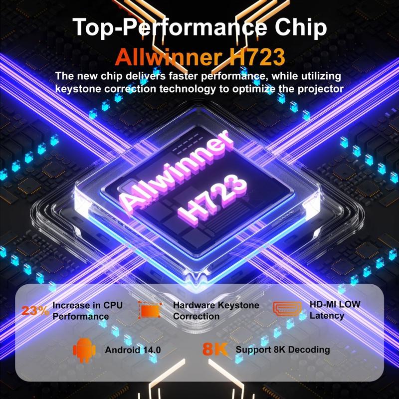 - Chipset: Allwinner H723 de cuatro núcleos de 64 bits Cortex-A53 + GPU Mali-G31