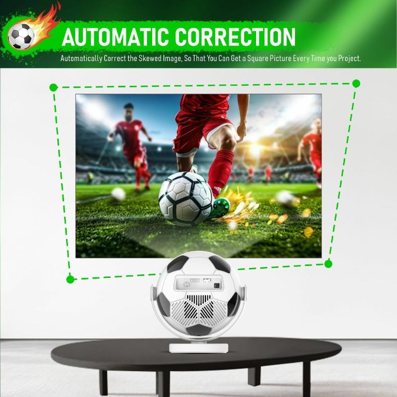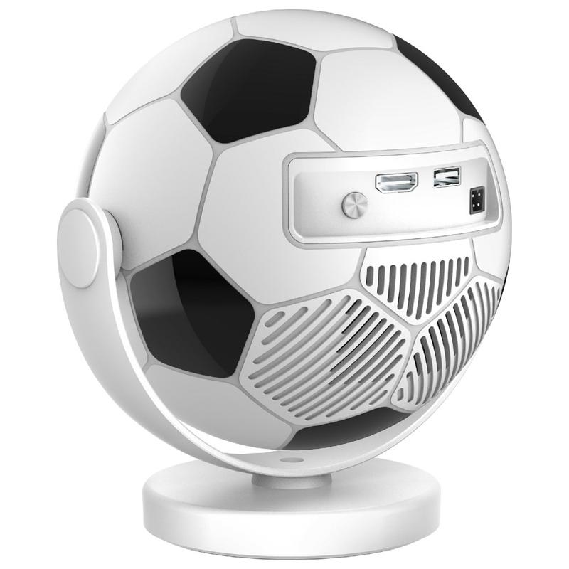 - Proyector portátil único con forma de balón de fútbol, con cuerpo compacto y soporte