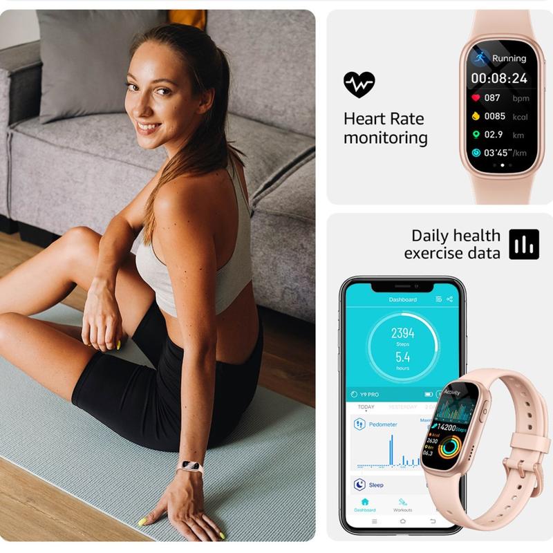 - Monitorización de la salud: frecuencia cardíaca, presión arterial, oxígeno en sangre, glucosa en sangre y monitorización del sueño