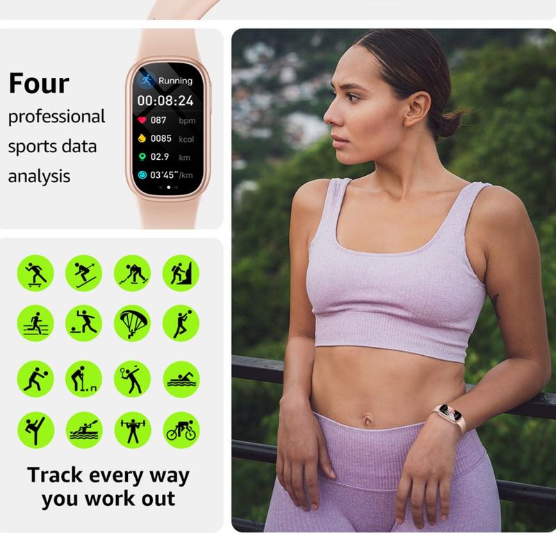 El reloj admite llamadas por Bluetooth cuando está conectado a tu smartphone, lo que te permite responder o rechazar llamadas directamente desde tu muñeca. También te ayuda a realizar un seguimiento de datos diarios clave, como pasos, calorías, distancia, patrones de sueño e indicadores de salud seleccionados, lo que te ofrece una visión más amplia de tu actividad diaria y tus hábitos de vida. Con múltiples modos deportivos y compatibilidad con hasta 147 opciones de ejercicio, es ideal para usuarios que desean una rutina más activa y organizada.