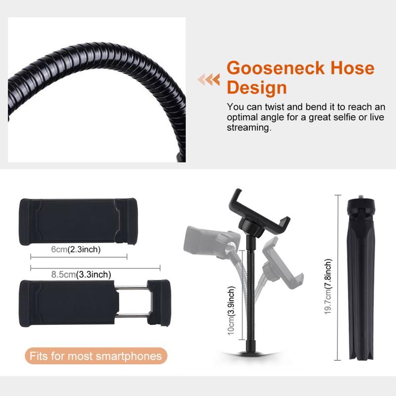 anillo de luz LED se puede montar en el soporte y llevarlo a cualquier parte, también se puede quitar del soporte en cualquier momento, la cabeza de la bola del trípode puede 360 grados de rotación puede liberar a ajustar a cualquier ángulo (El soporte no está incluido)