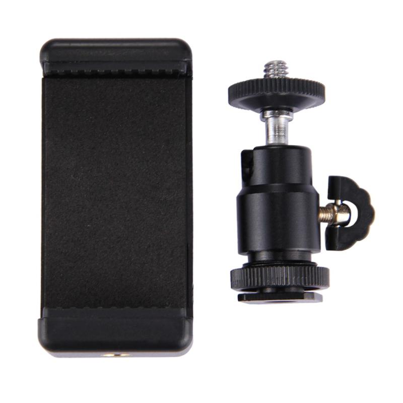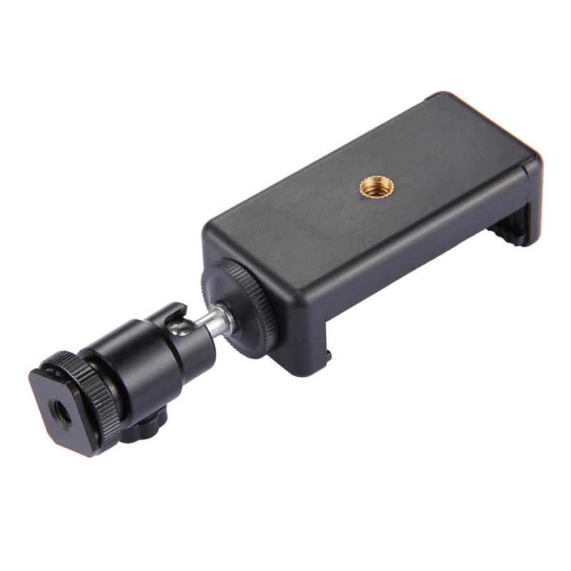 Puluz PU214 1/4" Hot Shoe Cabeza de Trípode + Abrazadera de Soporte de Trípode para Smartphones (Ancho de Abrazadera: 6-7.6 cm)