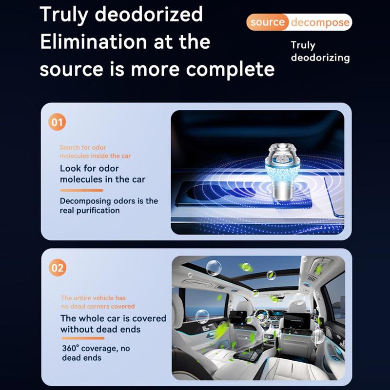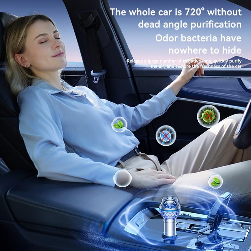 A diferencia de los ambientadores de coche estándar que simplemente enmascaran los olores no deseados, este purificador está diseñado para ayudar a combatir directamente las moléculas de olor. Su cobertura de purificación de 720 grados permite un tratamiento del aire más uniforme en todo el habitáculo, ayudando a refrescar el aire alrededor del conductor, los pasajeros, los asientos y el espacio para los pies. La combinación de iones negativos de alta concentración y ozono de bajo nivel actúa conjuntamente para crear un ambiente más agradable en el coche durante los desplazamientos diarios, los viajes largos o el tiempo que se pasa en el tráfico.