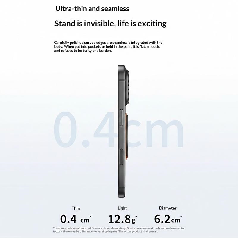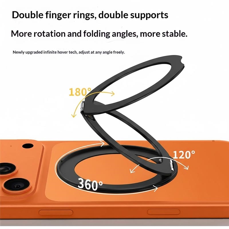 El soporte de anillo magnético tríptico ultrafino Q11 es un elegante agarre y soporte de teléfono diseñado para un uso diario flexible sin añadir volumen. Con una estructura de triple pliegue, se pliega de forma compacta cuando no está en uso, mientras que la rotación de 360° le permite ajustar rápidamente entre la visualización vertical y horizontal. El soporte adhesivo hace que la instalación sea rápida y segura, y el imán incorporado añade compatibilidad con soportes y accesorios magnéticos.