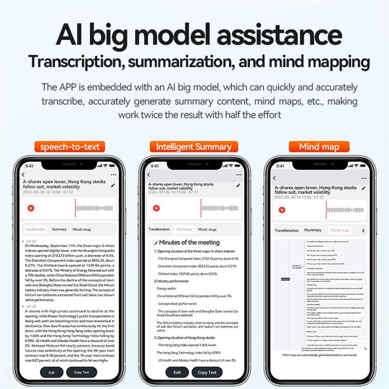 - Funciones AI inteligentes: Conéctese a través de Bluetooth a la AIREC-APP y disfrute de transcripción y traducción en tiempo real gracias a ChatGPT.