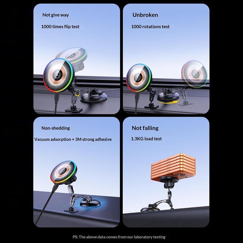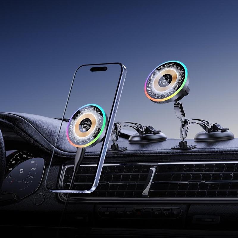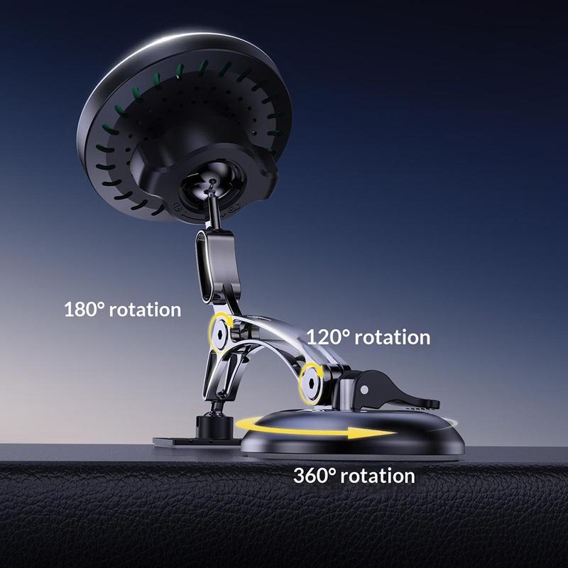 El QH-AKD248 está diseñado para mantener tu teléfono cargado, estable y a la vista mientras conduces. Combina un soporte magnético resistente con carga inalámbrica de 15 W, para que puedas colocar tu teléfono rápidamente y cargarlo al mismo tiempo. La base de succión está pensada para un uso fiable en el salpicadero o el parabrisas, lo que te permite disfrutar de una configuración más ordenada y práctica en el coche.