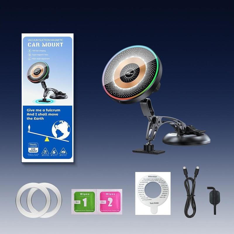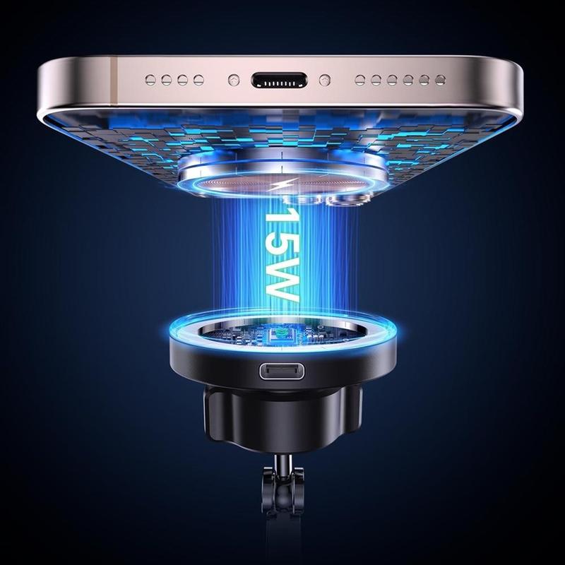 • Soporte magnético para coche QH-AKD248 con carga inalámbrica de 15 W y ventosa para el salpicadero o el parabrisas