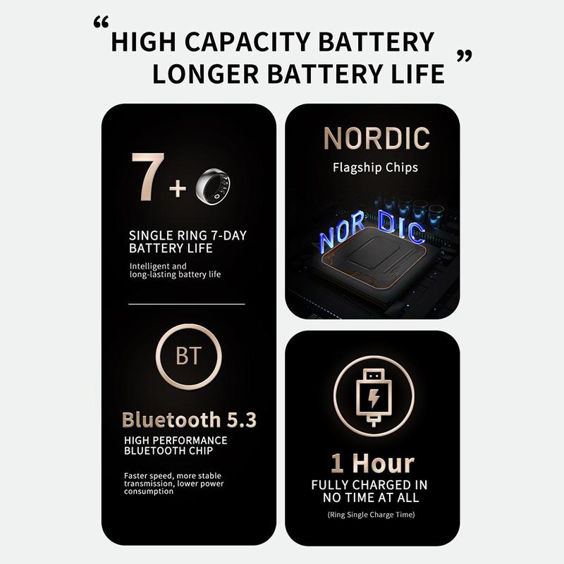 Este anillo inteligente combina el seguimiento de la salud, la monitorización del estado físico y la conectividad inteligente en un diseño ligero y duradero. Con impermeabilidad IP68, ofrece un rendimiento fiable para un estilo de vida activo.