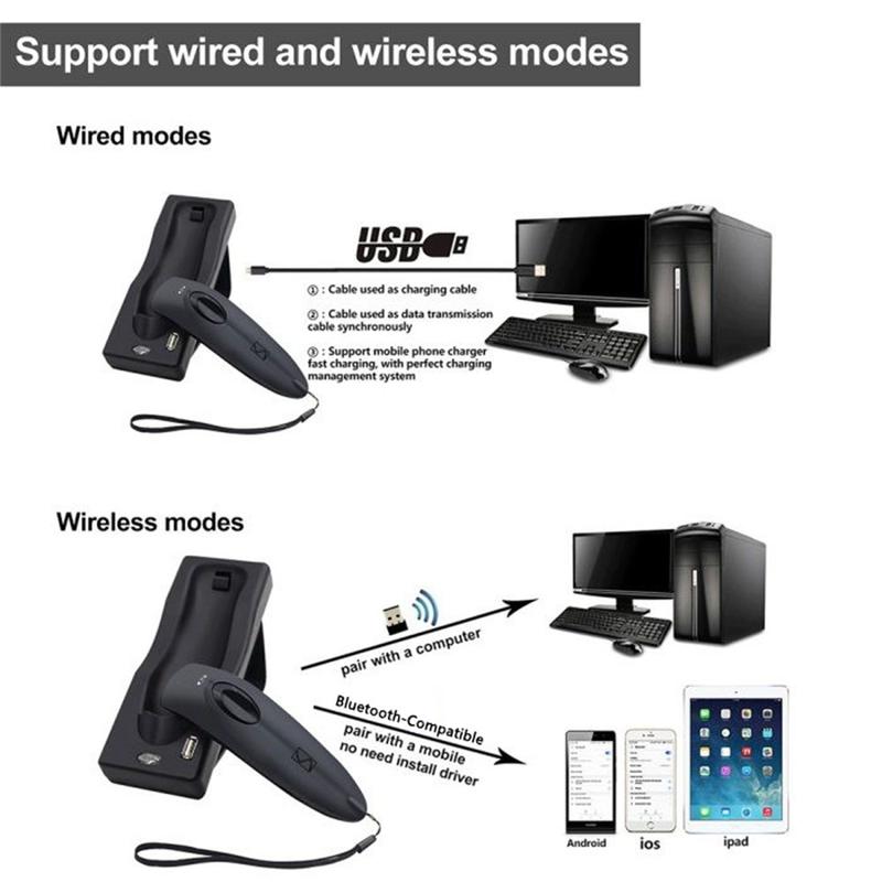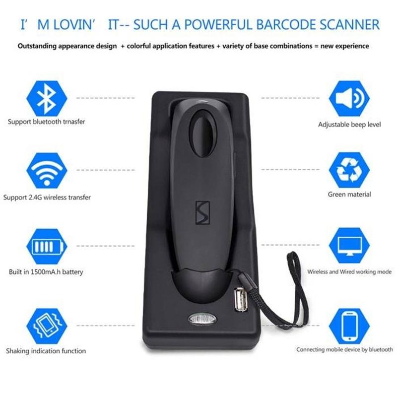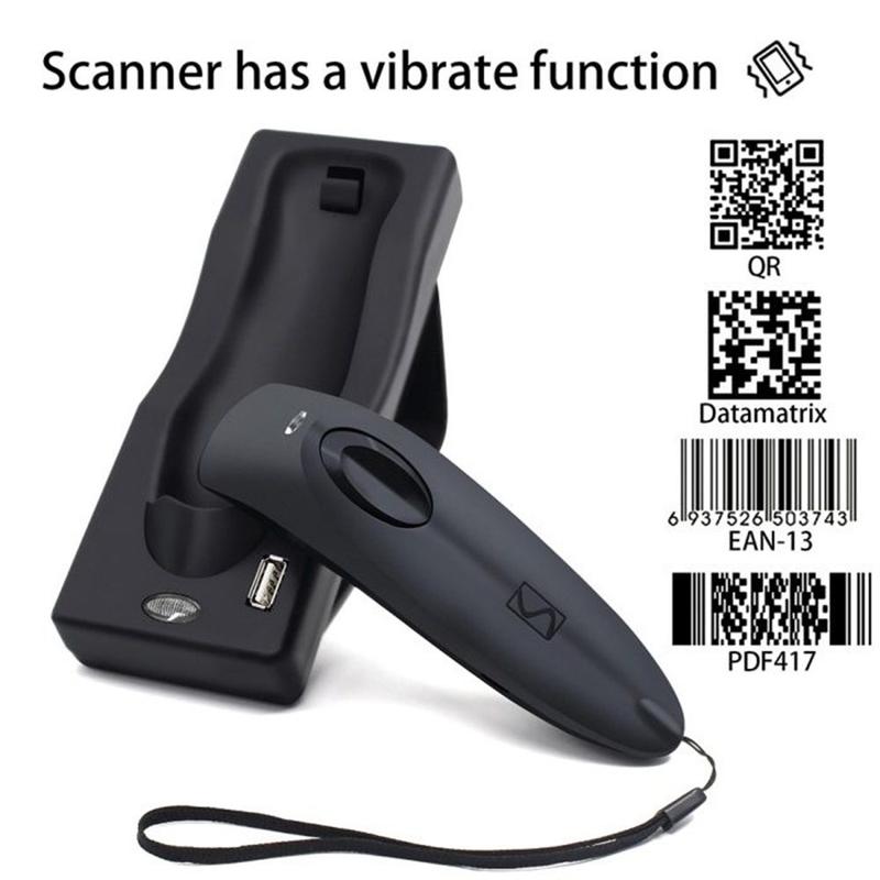 Escáner de códigos de barras 2D inalámbrico R40 - Lector de códigos QR Bluetooth 4.0 y 2.4GHz con base de carga, 1500 escaneos/s