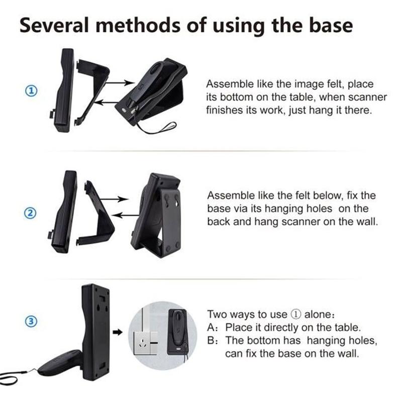 La batería de 1000 mAh proporciona hasta 20 horas de uso continuo, mientras que la base de carga incluida admite el escaneado manual y en posición fija.