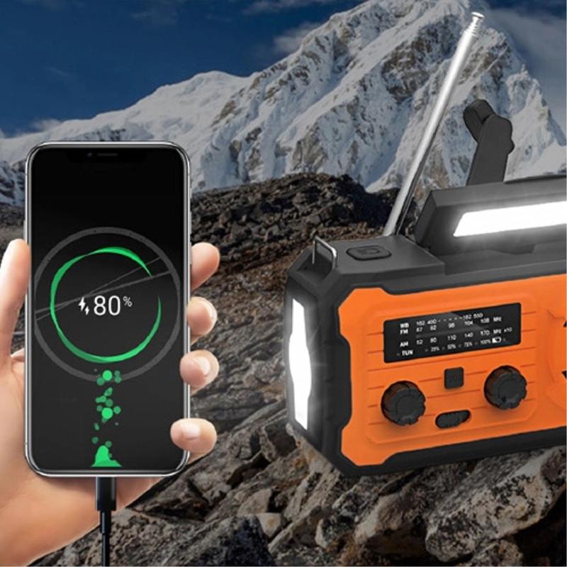 Manténgase preparado durante cortes de energía, viajes de campamento y emergencias al aire libre con la linterna y radio de emergencia con manivela YX328. Este dispositivo de supervivencia multifunción combina un cargador solar, un generador manual con manivela, radio FM/AM/WB, linterna LED y un banco de energía de 4000mAh en una herramienta compacta. Ya sea que se encuentre al aire libre o enfrentando un apagón, le ayuda a mantenerse informado, iluminado y conectado.