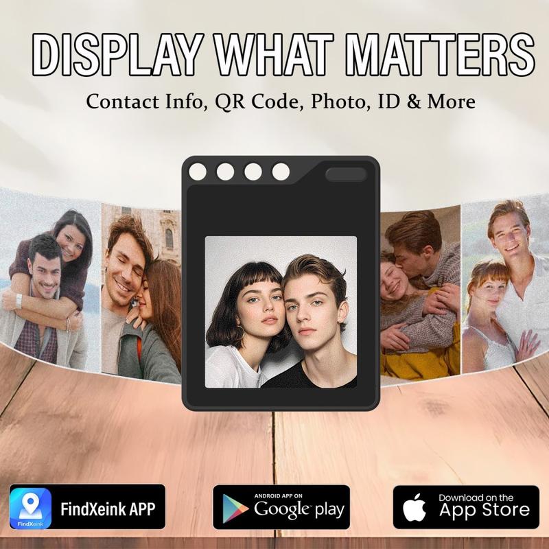 - La pantalla personalizable admite fotos, texto, datos de contacto y códigos QR a través de la aplicación FindXeink