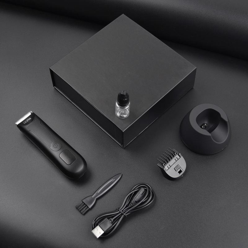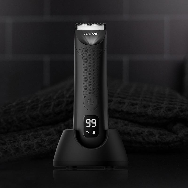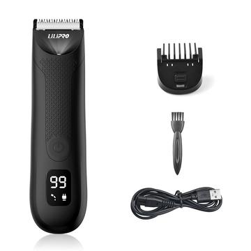 Recortadora eléctrica para el vello corporal Lilipro con pantalla LED: kit de aseo personal resistente al agua con base de carga