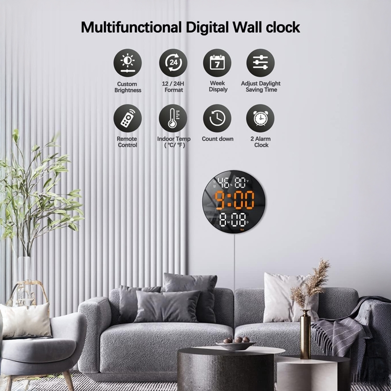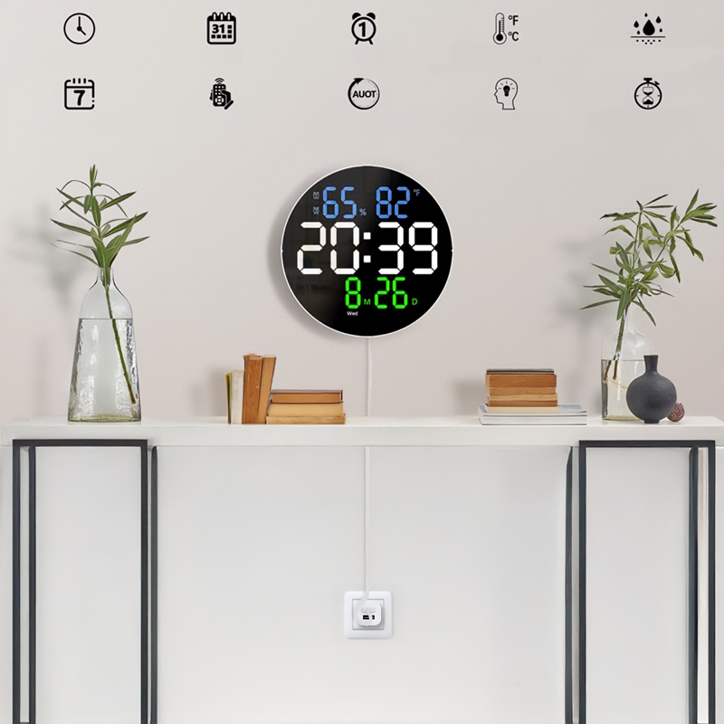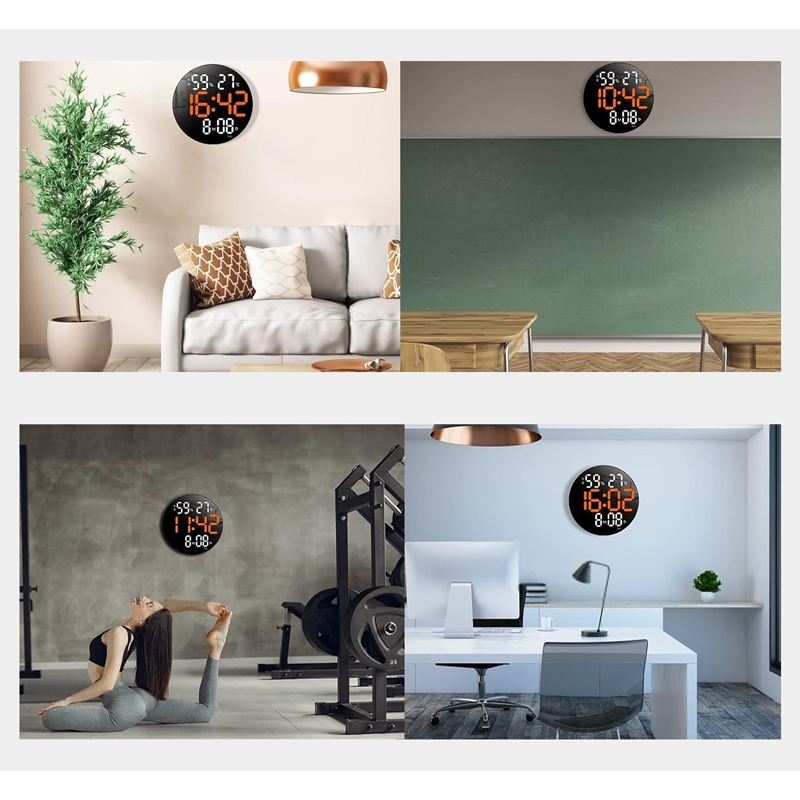 6672 Reloj de pared LED silencioso - Pantalla de temperatura y humedad de 25,5 cm con luz nocturna ambiental y mando a distancia