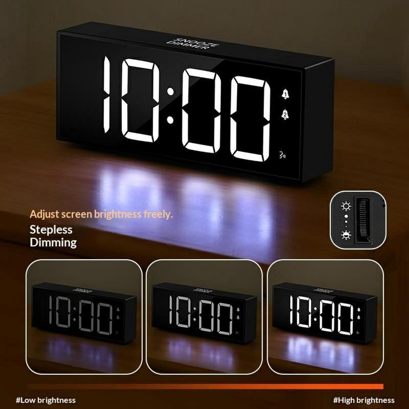 : reloj de mesilla de noche con brillo regulable y repetición de alarma