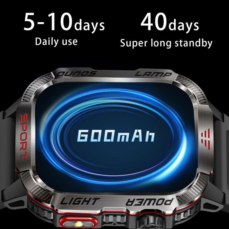 HT29 Smartwatch con pantalla HD de 2,01", brújula, detección de altitud, linterna y monitorización de la salud