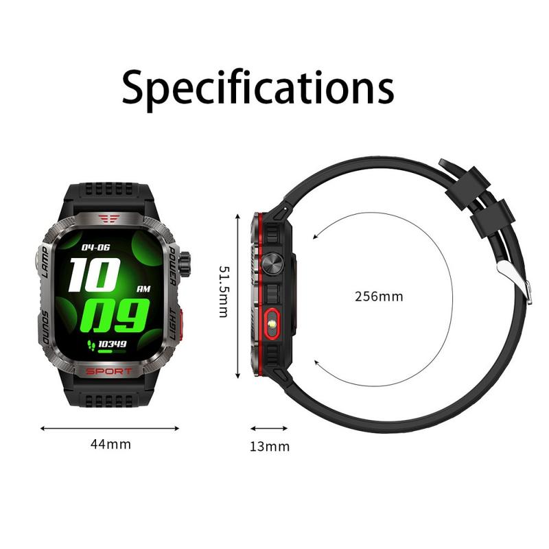 HT29 Smartwatch con pantalla HD de 2,01", brújula, detección de altitud, linterna y monitorización de la salud