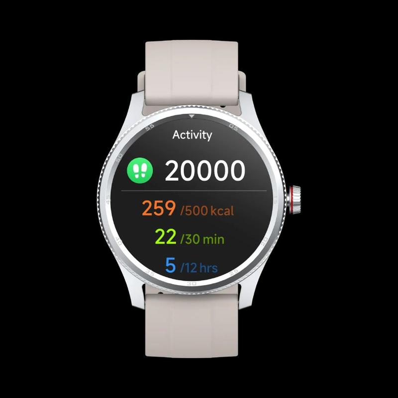 - Pantalla táctil TFT redonda de 1,38" (240 x 240): pantalla nítida con esferas personalizables