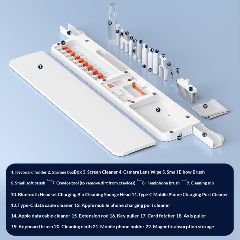 - Incluye 22 herramientas profesionales de limpieza electrónica