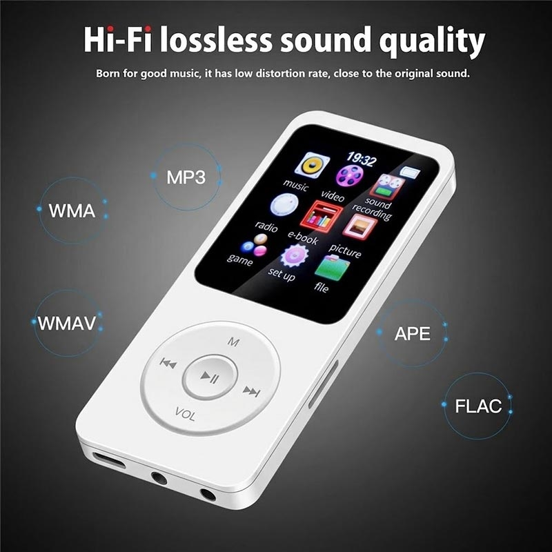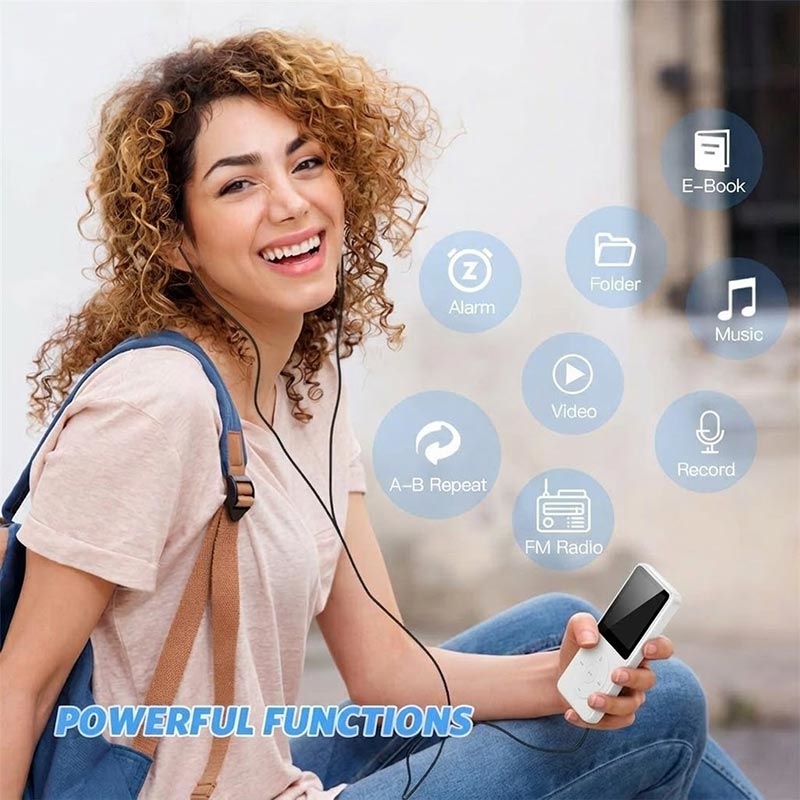 Lleve su música y sus archivos multimedia en el bolsillo con el reproductor de música MP4 portátil T1. Compacto y ligero, está diseñado para escuchar música a diario y es compatible con múltiples formatos de audio, incluidos APE y FLAC, para una reproducción sin pérdidas. Además de música, también incluye reproducción de vídeo, radio FM, lectura de libros electrónicos y grabación de voz, lo que lo convierte en un práctico dispositivo de entretenimiento todo en uno para desplazamientos, viajes, entrenamientos o estudios.