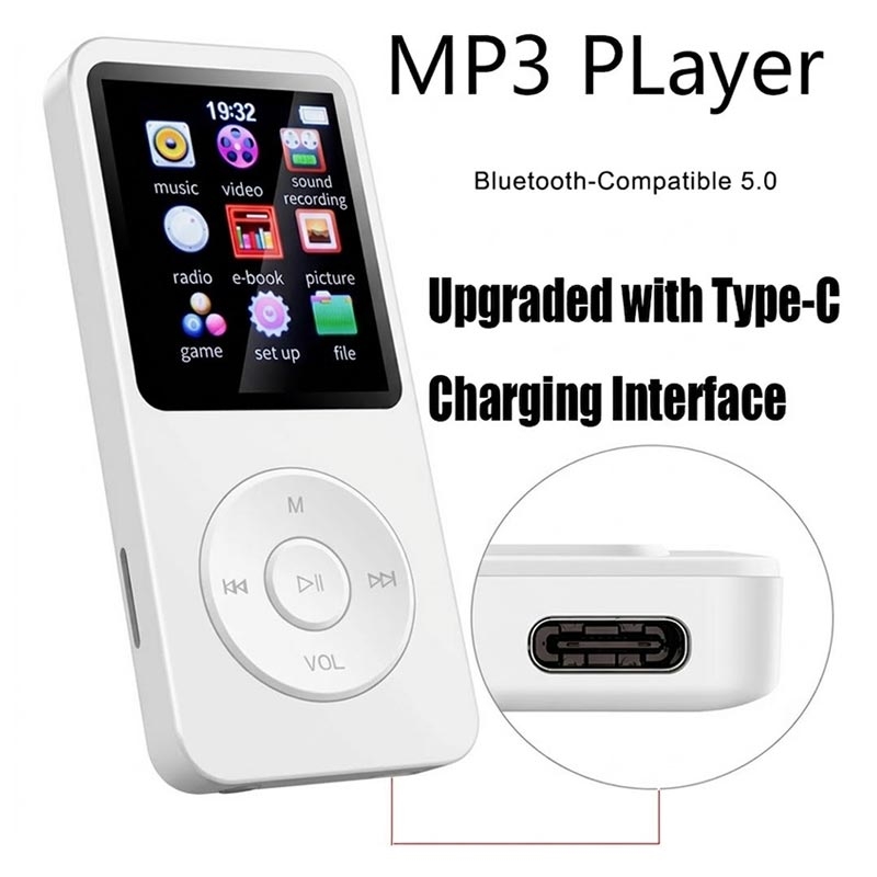 La pantalla de 1.8 pulgadas te ayuda a navegar fácilmente por las pistas y los ajustes, y el Bluetooth 5.0 te permite conectarte a auriculares o altavoces inalámbricos compatibles para escuchar sin cables. El almacenamiento también es flexible: se incluye una tarjeta TF de 64GB y el reproductor admite una expansión TF de hasta 128 GB, lo que le proporciona mucho espacio para canciones, audiolibros y archivos. Recárguelo a través de una entrada de 5 V/1 A y vuelva a escuchar rápidamente con un tiempo de carga aproximado de 2 horas.