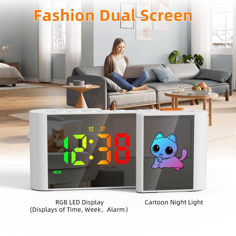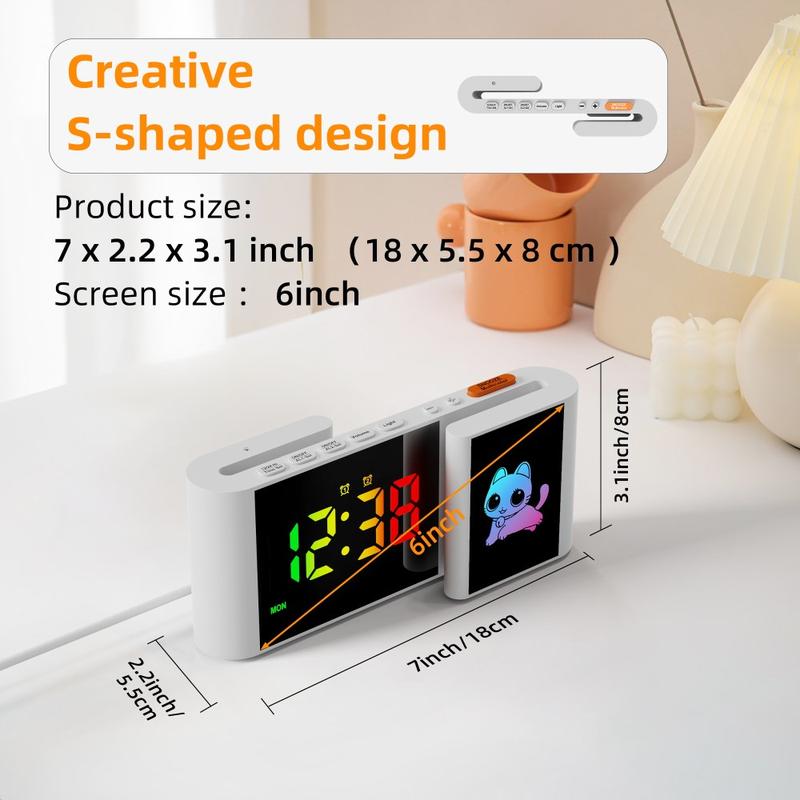 - Diseño único de doble pantalla en forma de S: el creativo diseño en forma de S separa la pantalla del reloj y la luz nocturna para ofrecer un aspecto moderno y elegante que realza cualquier decoración.