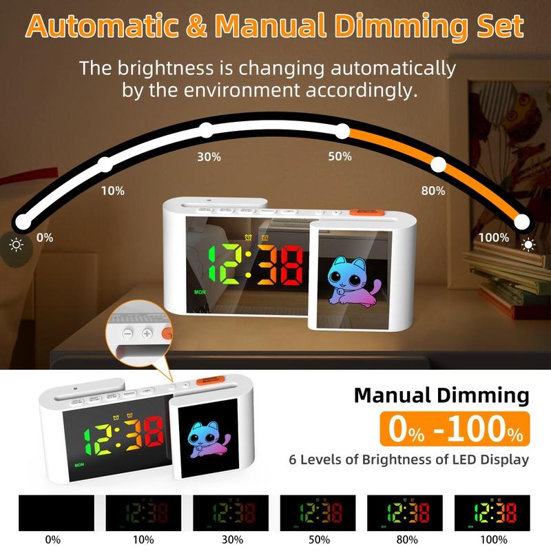 - Función de doble alarma: configura dos alarmas independientes, ideales para separar los horarios de los días laborables y los fines de semana. El temporizador de repetición personalizable (5-90 minutos) garantiza que se despierte a su propio ritmo.