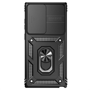 Samsung Galaxy S23 Ultra 5G Rotary Ring Hybrid Case with Camera Shield - Black