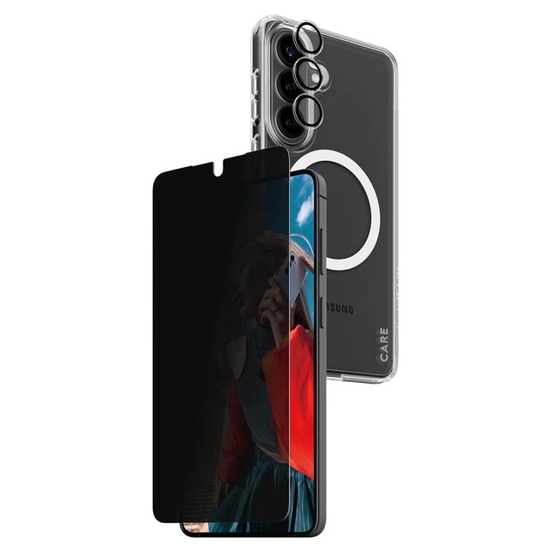 Care by PanzerGlass Paquete de privacidad 3 en 1 para Samsung Galaxy S26+: protector de pantalla de privacidad, protector de lente Hoops, funda CARE Urban Combat (3,6 m), EasyAligner