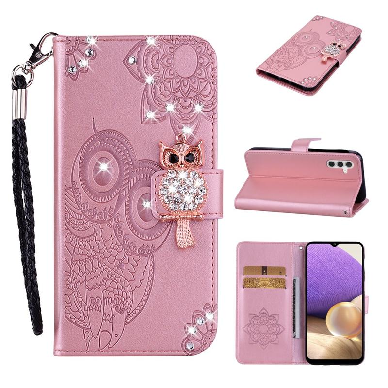 Samsung Galaxy S26 Búho Rhinestone Funda billetera - Oro rosa